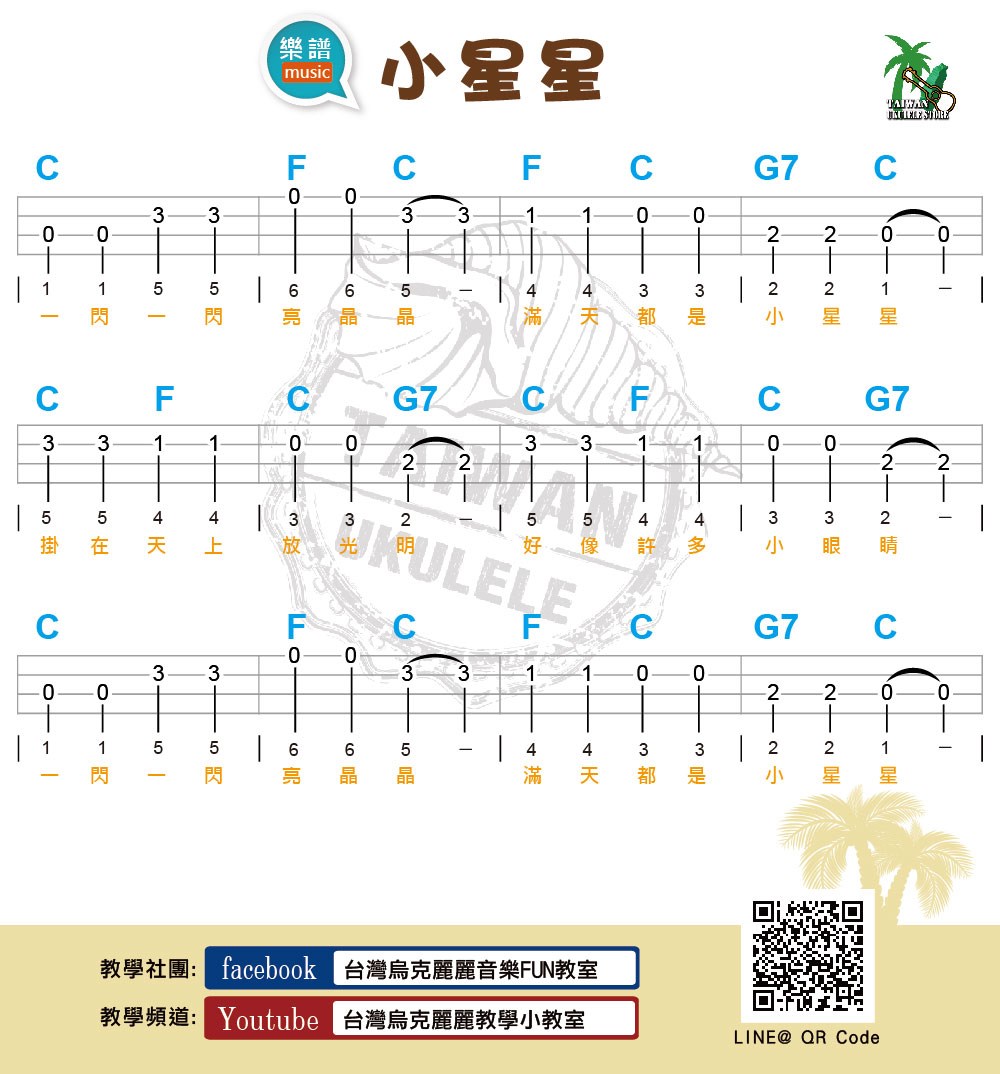 「小星星」烏克麗麗單音歌曲練習,彈奏時跟著哼唱旋律,能有效幫助記憶烏克麗麗「音階」位置、培養音感,可以請另一位烏克好友彈奏「和弦」一起來合奏,練習時請使用節拍器來達到事半功倍的效果喔!